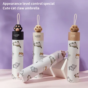 고양이 발바닥 손잡이가 있는 새끼 고양이 프린트 패턴 우산, 블랙 코팅, 햇빛과 비에 겸용, 2인용 수동 대형 우산, 생일 선물, 명절 선물, 실용적인 선물 우산