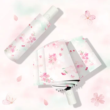 떨어지는 벚꽃 다채로운 인쇄 패턴 우산 완전 자동 우산 방수, 자외선 차단제, 자외선 차단 휴대용