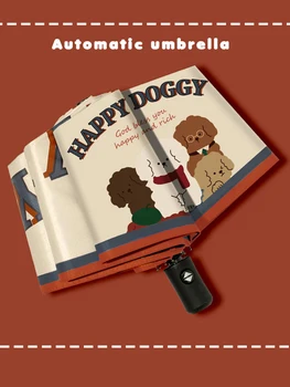 Cute Puppy Pattern Fully Automatic Umbrella Sun, Rain, and UV Protection Folding Umbrella Travel Umbrella 1pc