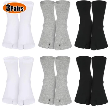 3 Pairs Tabi Toe Socks Japanese Style Cotton Solid Two-Finger Socks Men's & Women's Fashion Kimono Flip-flops Sandals Split Socks