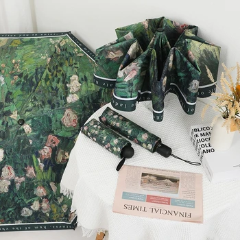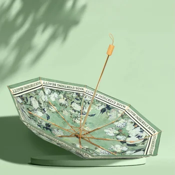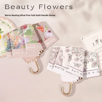 Compact Curved Portable French Oil Painting 5-Fold Foldable Small Gold Ring UV Protection and Waterproof Parasol