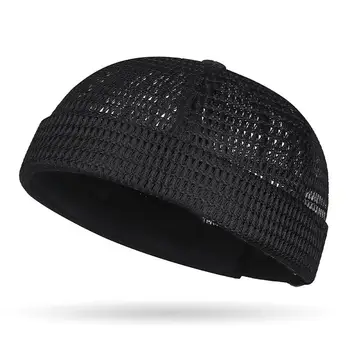 New Mesh Breathable Brimless Melon Skin Hat Summer Ultralight Adjustable Docker Beanie Hat Outdoor Hip Hop Sailor Landlord Hat