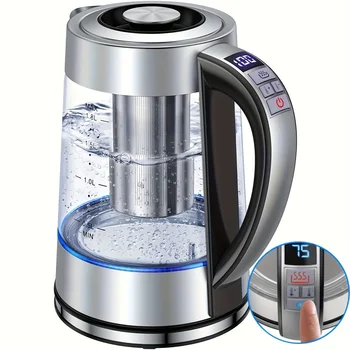 전기 유리 주전자, 1.8L 차 주전자, 12단계 온도 조절 및 차 인퓨저 포함, 최대 24시간 보온, 스테인리스