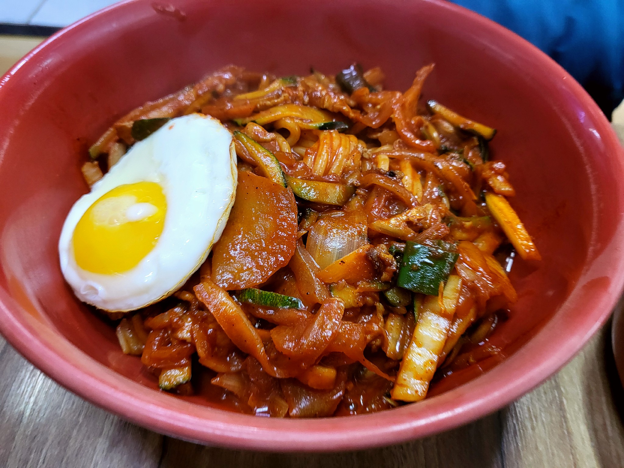 The waiting time is quite long. I waited for over an hour to finally get in. I tried the Chinese bibim noodles(Junghwa bibim myeon). The slightly spicy and sweet onion flavor was really good. The egg on top of the noodles somewhat soothed the spiciness. It was very addictive.