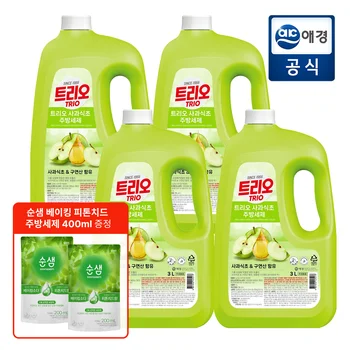 트리오 사과식초 대용량 주방세제 3L*4개 + 순샘 베이킹소다 주방세제 피톤치드향 200ml 증정