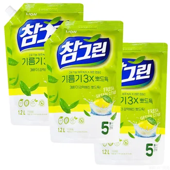참그린 녹차 리필 1200mL x 3개, 주방세제 리필