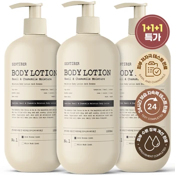 [수분장벽 479% 개선] 1+1+1 센티베르 바질 앤 캐모마일 대용량 바디로션 1000ml 2종향 약산성 바디크림 향좋은 고보습 퍼퓸