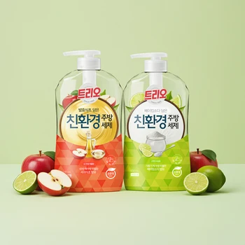 트리오 친환경 주방세제 680ML 용기 베이킹소다 라임1개 +발효식초 애플 1개